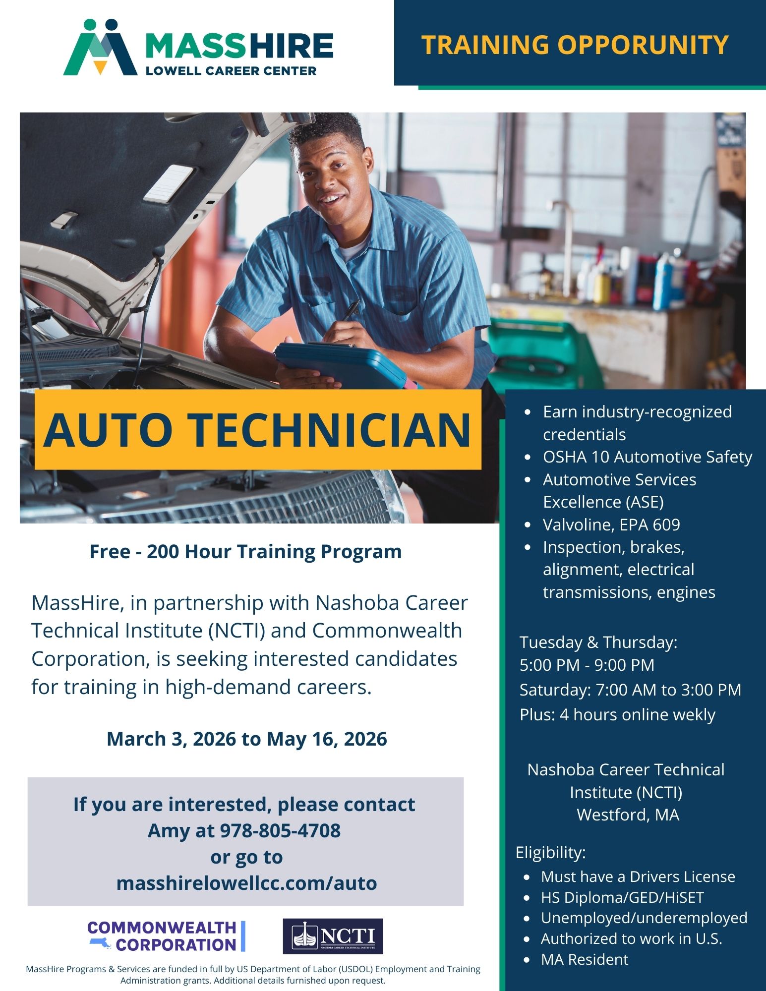 MassHire, in partnership with Nashoba Career Technical Institute (NCTI) and Commonwealth Corporation, is seeking interested candidates for training in high-demand careers.